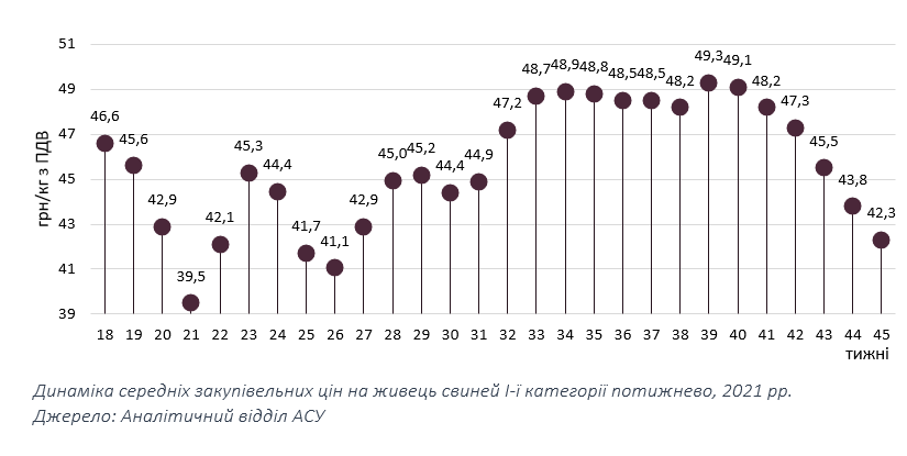 Представники м’ясопереробної галузі не були одностайними у своїх прогнозах щодо подальшої динаміки цін. Водночас, більшість з них не бачать передумов для подальшого зниження цін та відзначає, що реалізація свинини йде планово. Частина представників м’ясопереробної галузі вважає, що цього тижня ціни закупівлі досягли свого «дна», а початок заготівлі м’ясної сировини для виробництва ковбас та м’ясних делікатесів на зимові свята стане причиною реабілітації цін.