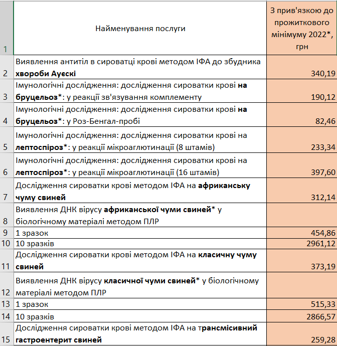 ВАЖЛИВО! Хоча прожитковий мінімум збільшуватимуть упродовж 2022-го ще двічі, вартість послуг, які надають державні установи — ветлікарні та лабораторії, відповідно до наказу 96, — не змінюватиметься до 1 січня 2023-го