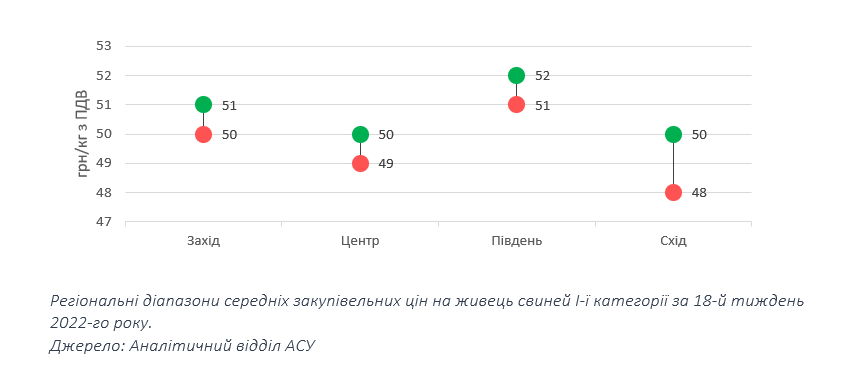 Останні торги квітня, як і попередні, для більшості виробників свинини завершилися досить швидко. Так, активність з боку заготівельників дозволила більшості «розписати» майже усі товарні партії ще до обіду. При цьому, близько половини операторів переглянули ціну реалізації на 0,5-1,5 грн/кг у бік підвищення. Не дивлячись на позитивне коливання цін, регіональні діапазони цін змінилися незначно: нижній поріг цін в Центрі та на Сході піднявся на півгривні, так само змінилася максимальна цінова позначка в Західних областях. Тож хоча подекуди на Півдні та Заході зустрічалися і вищі ціни, у більшості випадків ціна реалізації «вписалася» 48-51 грн/кг.