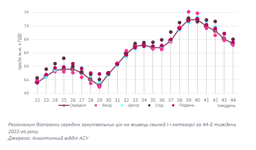 Ключовими чинниками, що наразі створюють тиск на ціни є посилення конкурентної боротьби між переробниками на тлі зменшення торговельної активності та обережніша закупівля живця. Так, представники м'ясопереробки були змушені скорегувати обсяги заготівлі, щоб запобігти формуванню перехідних залишків продукції через порушення графіків постачання охолодженої свинини у зв'язку з частими повітряними тривогами та перебоями електропостачання.