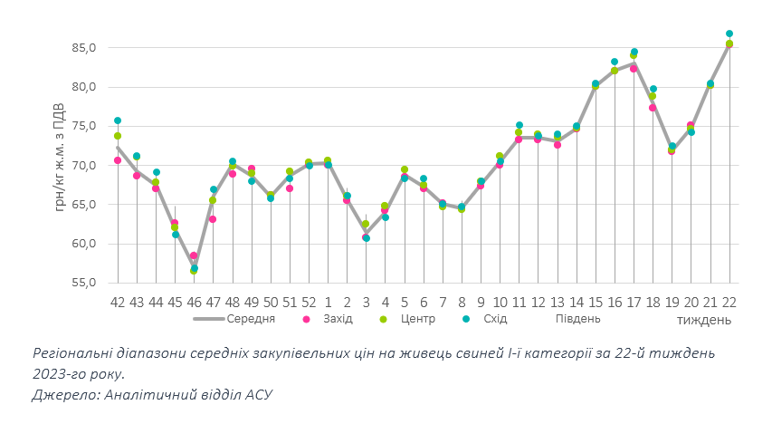 Передумови для згаданої позитивної динаміки цін закупівлі сформувала підвищена активність з боку заготівельників на тлі нестачі свинини на внутрішньому ринку. Так, виробники свинини відзначили майже ажіотажний попит на тварин забійних кондицій, готовність до відновлення співпраці з боку колишніх контрагентів та бажання забронювати об’єми ще до початку активної фази цінових перемовин. Як і попереднього тижня, цінову ситуацію підігріває повноцінний початок шашличного сезону та потреба виробників м’ясних виробів сформувати запаси м’ясної сировини в умовах обмеженого надходження імпортної продукції.