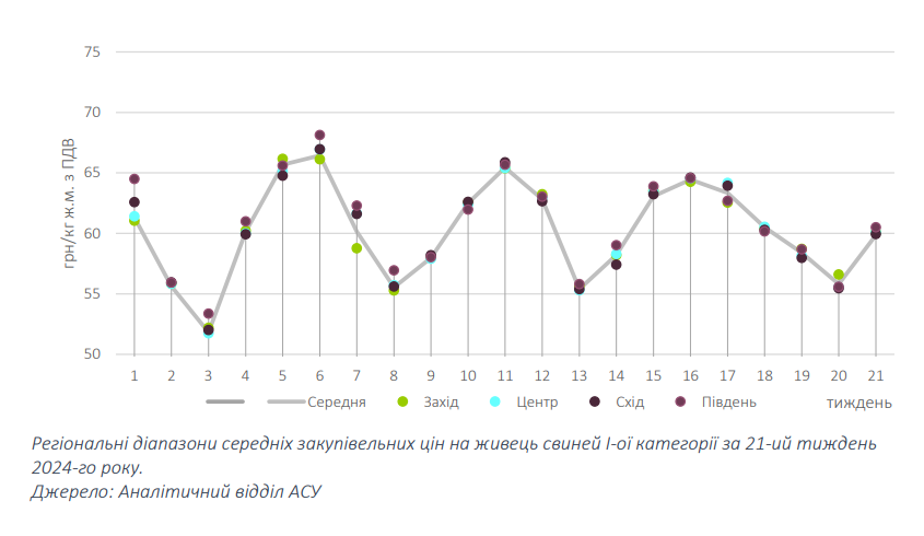 Постачальники свиней забійних кондицій зазначають, що торгівля йде планово, без переносів і відмов. Водночас, пропозиція тварин важчою масою зберігає тиск на ціни, хоча він помітно нижчий ніж до цього. Заготівельники наразі утримуються від прогнозів щодо подальшої зміни цін, проте більшість з них розраховує на їх стабілізацію найближчим часом. Реалізація свинини, за їх відгуками, послабилася порівняно з Великоднім періодом, але залишається відносно стабільною та плановою.