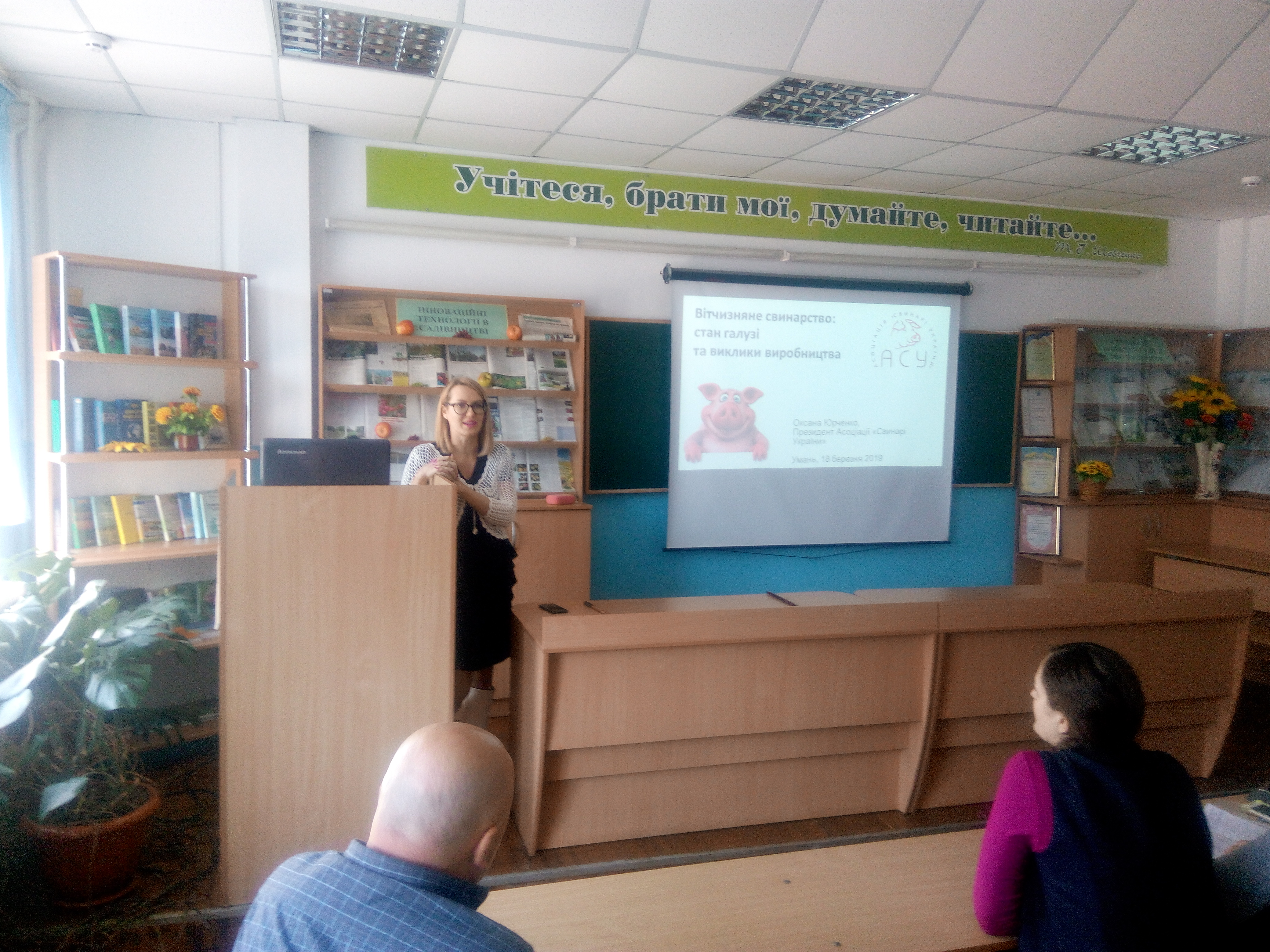 18 березня пані Юрченко розповіла освітянам про сучасне свинарство та умови роботи на вітчизняних свинокомплексах.