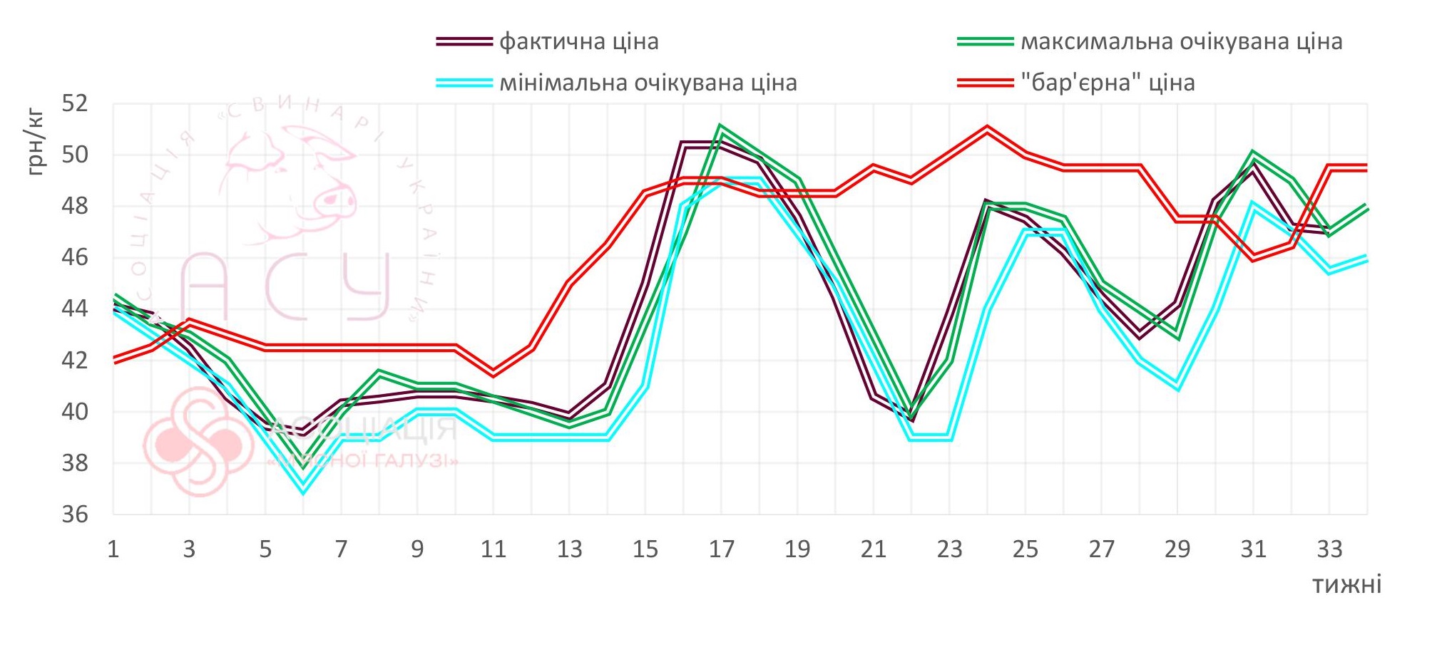 Динаміка закупівельних цін на живець свиней І-ї категорії потижнево, 2019 рр.