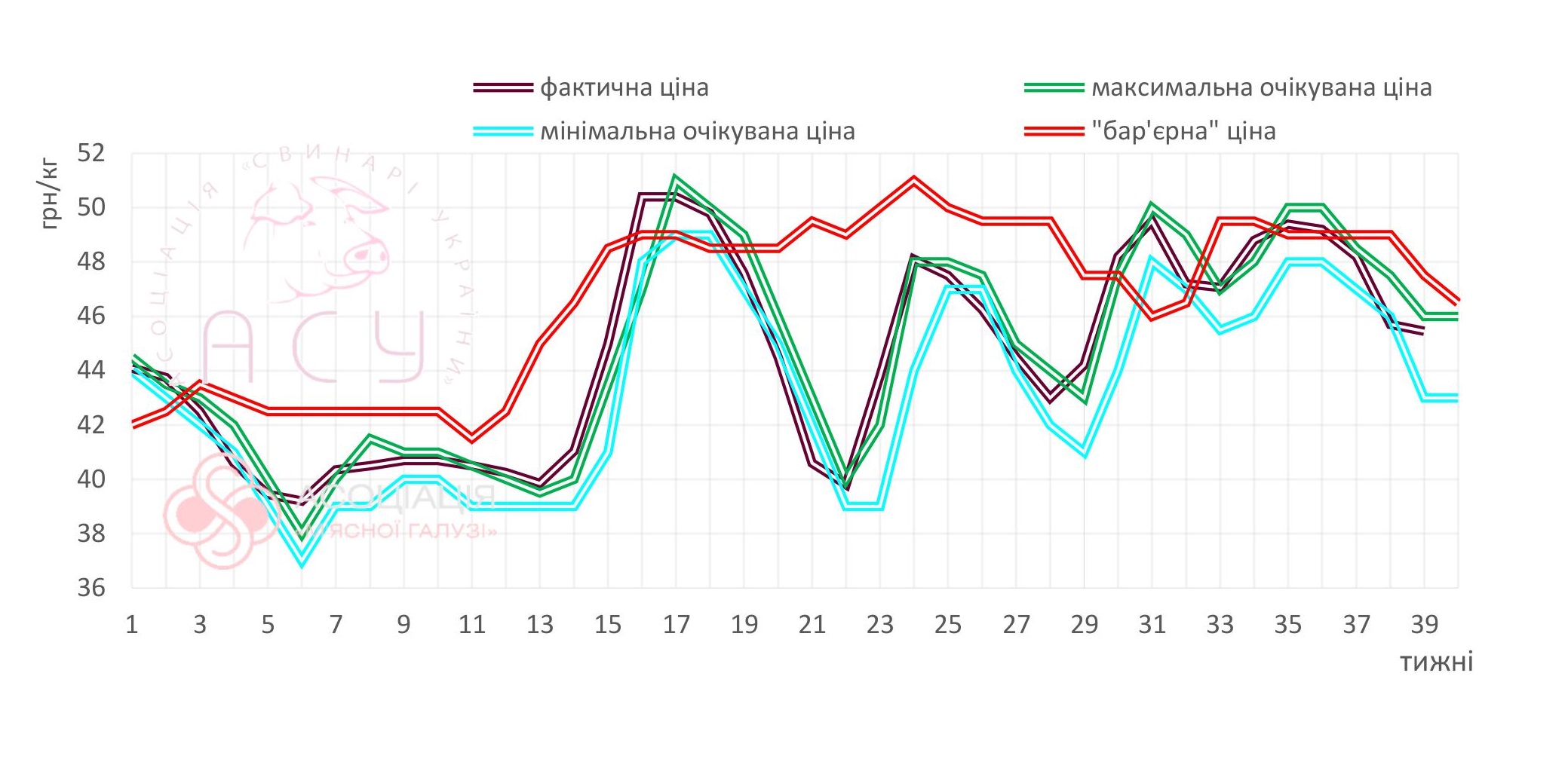 Представники Асоціації «М’ясопереробної галузі» стриманіші у прогнозах та очікують, що ціни закупівлі наступного тижня коливатимуться в межах 43,5-46 грн/кг.