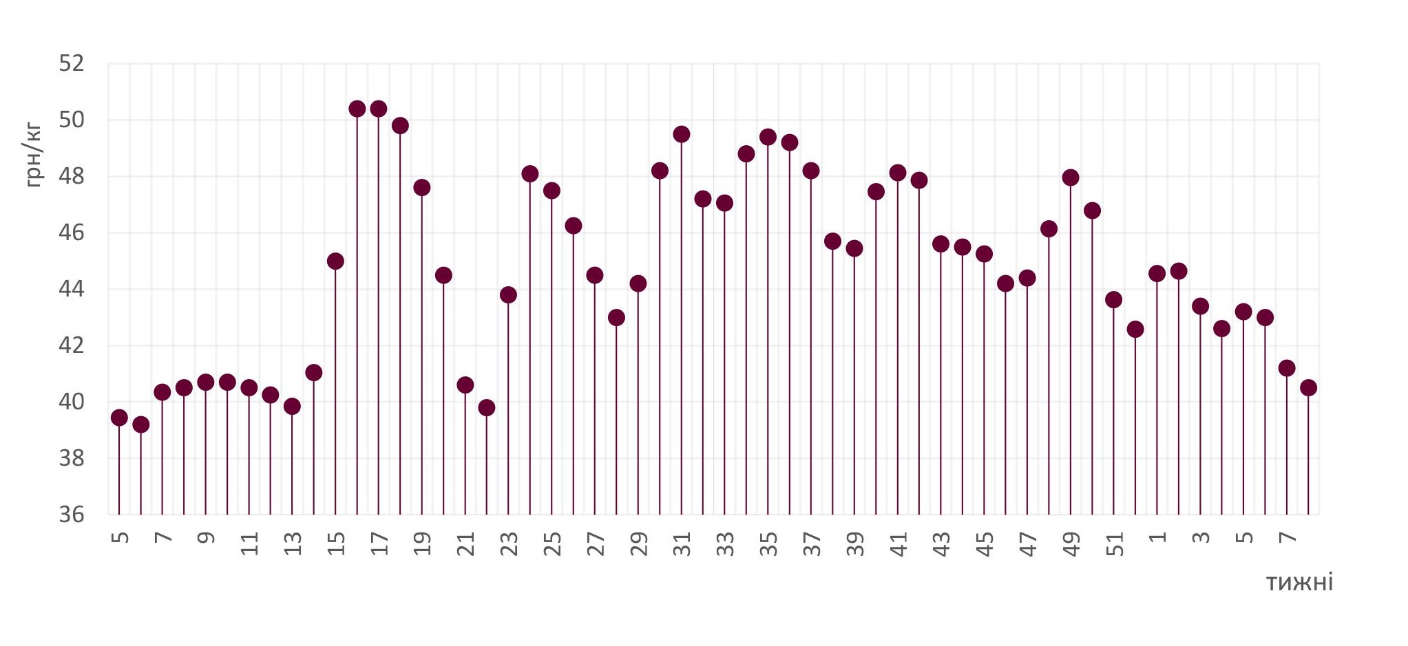 У ході торгів попереднього тижня, ціни на товарне поголів’я «просіли» на 0,5-2 грн/кг, а діапазон закупівельних цін понизився до 39-41 грн/кг. Тож реалізація свиней забійних кондицій за вищою ціною мала епізодичний характер.