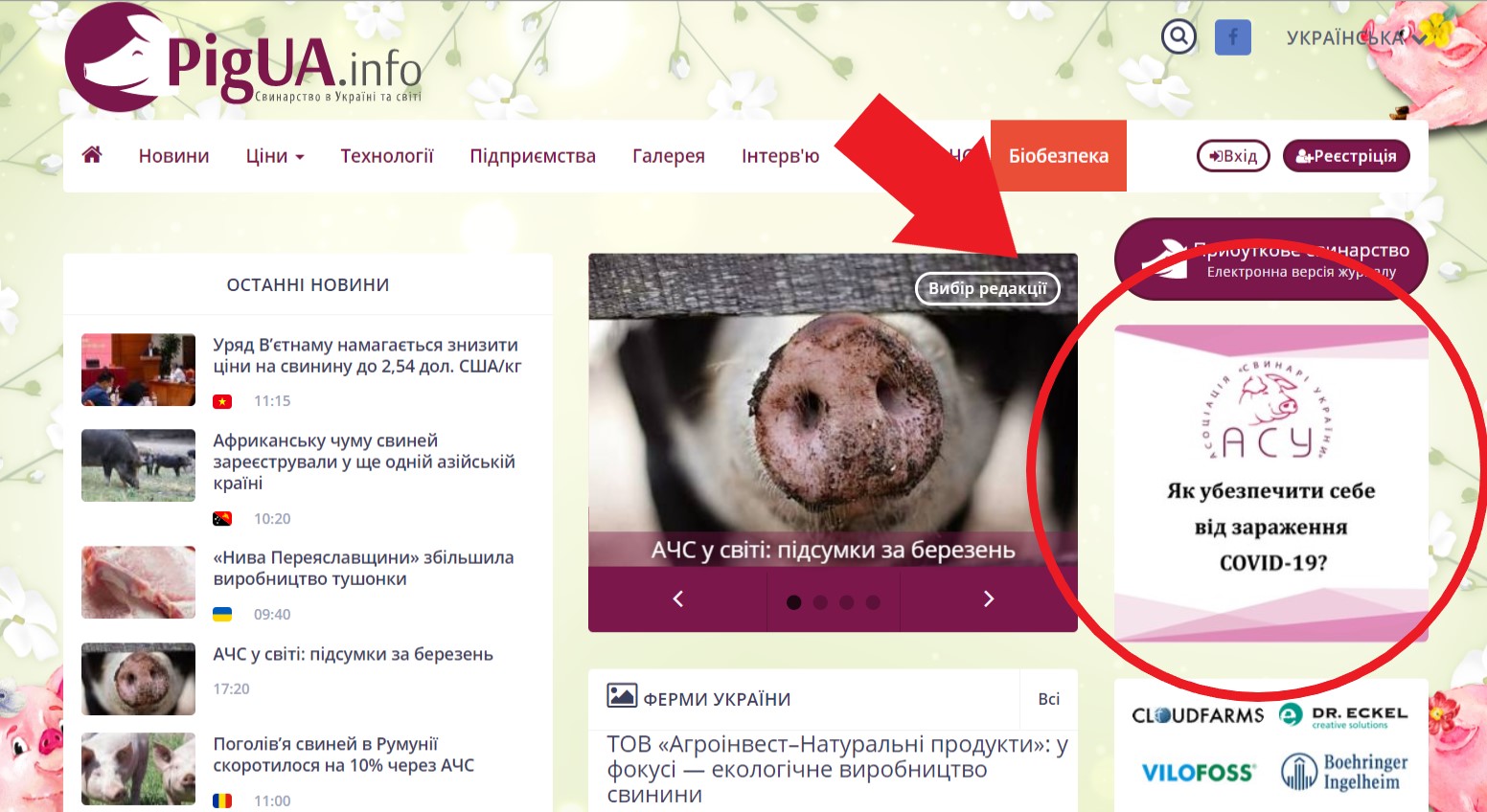 Нагадаємо, експерти Асоціації «Свинарі України» спільно з партнерськими організаціями, розробили рекомендації з організації роботи свиногосподарства в умовах пандемії COVID-19. Як мінімізувати ризики зараження людей при транспортуванні, при відвідуванні їдальні, проходженні санпропускників та відвідуванні туалетних кімнат шукайте за посиланням або на головній сторінці PigUA.info.