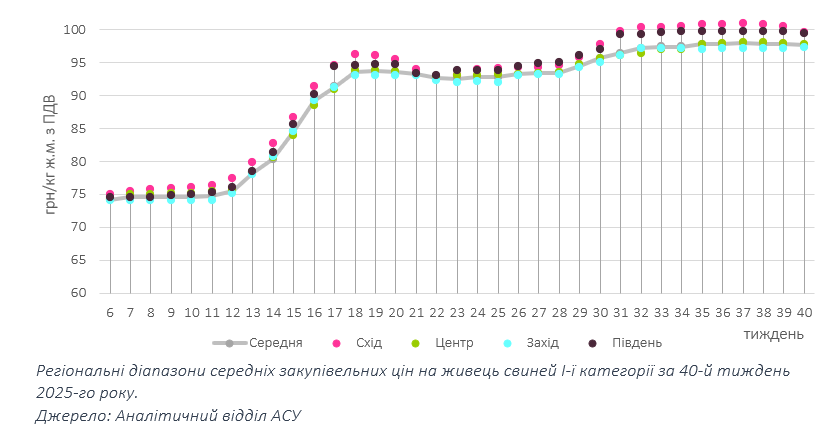 Водночас, інші переробники відзначають, що із досить різким похолоданням попит на охолоджену свинину послабився, а пропозиція, натомість, подає ознаки відновлення: середня забійна маса тварин вища ніж попередньо, а позиція окремих постачальників живця щодо реалізації тварин активніша. Крім того, відзначають і поступове посилення як внутрішньої конкуренції між постачальниками охолоджених півтуш та відрубів, так і відчутніший тиск пропозиції імпортованої сировини на збут останнього. Тож, на думку деяких заготівельників, котирування на ринку живця незабаром інтегрують сезонні тренди та поступово послаблюватимуться. Разом із тим, обмеженість пропозиції живця помітно стримуватиме темпи пониження цін і/чи тривалість такого періоду, тому окремі представники м'ясопереробки передбачають що негативне цінове коливання буде незначним (в межах 2–3 грн/кг) і може звестися до консолідації цін в межах вужчого цінового коридору в усіх регіонах країни.