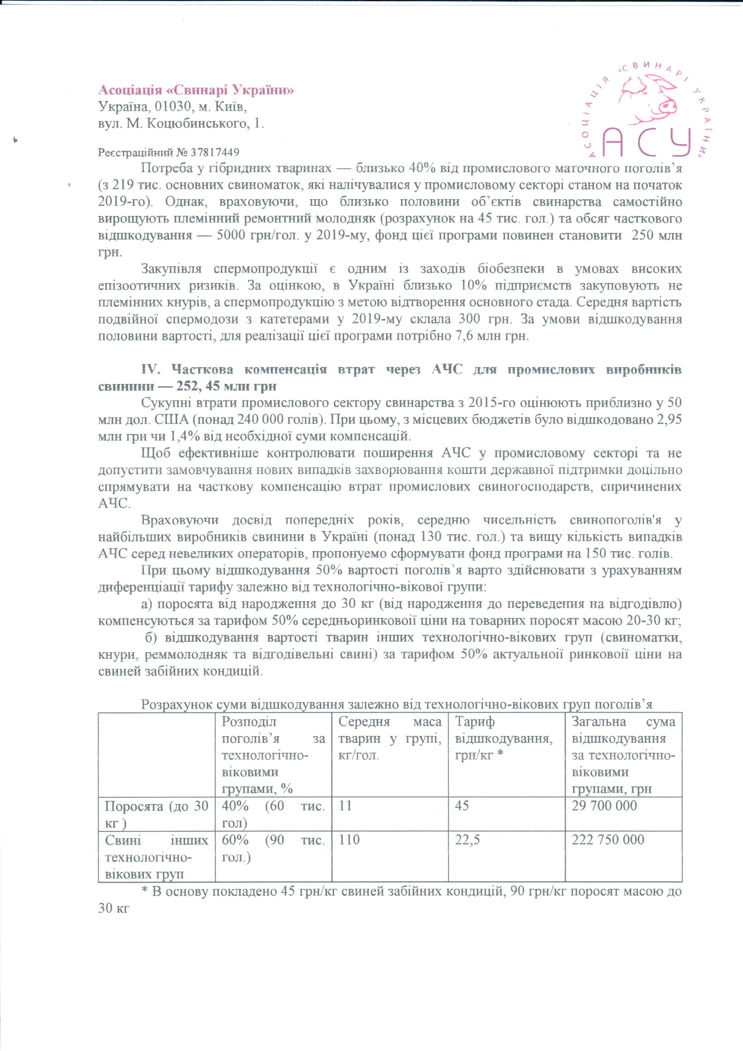 Виходячи з обсягу коштів, виділених на державну підтримку галузей тваринництва — 2,5 млрд грн — та питомої ваги свинарства у валовій продукції тваринництва (за винятком продукції птахівництва) за результатами минулого року, АСУ пропонує застосувати такі механізми підтримки: