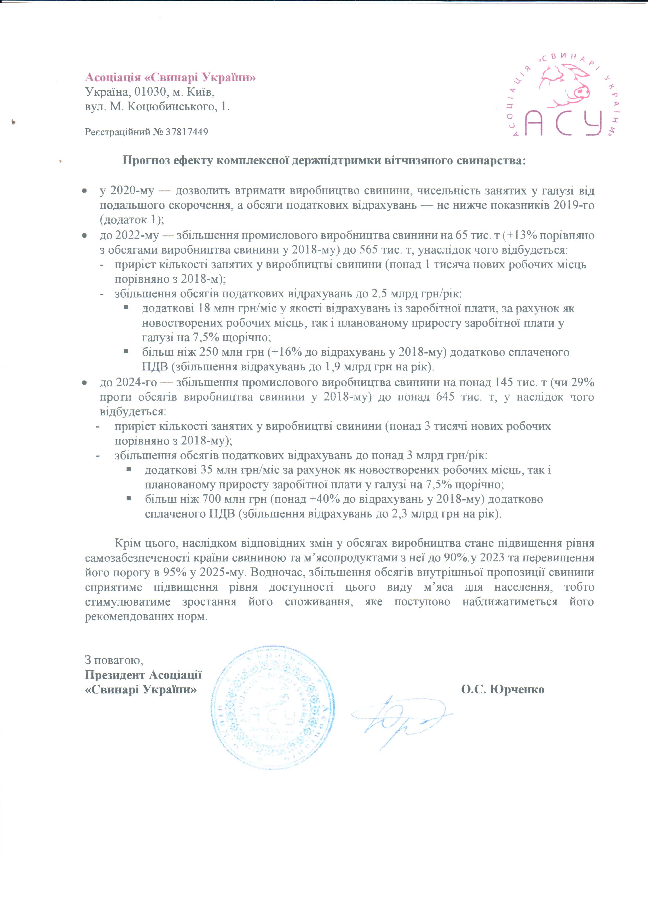 Детальніше про пропоновані програми підтримки, фонди та очікуваний ефект комплексної держпітримки вітчизняного свинарства — у листі.