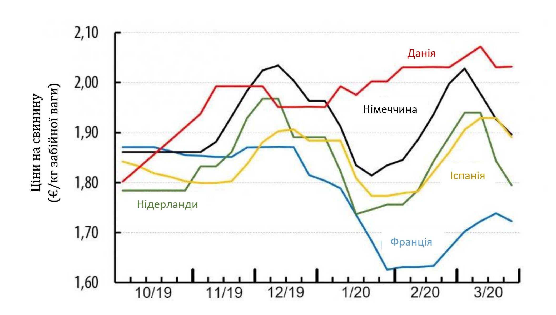 Після значного зростання упродовж січня-лютого, у березні ціни на свинину у країнах-членах ЄС різко впали, особливо в Німеччині та Нідерландах. Німецькі та голландські ціни втратили 19 та 15 центів/кг відповідно між першим та останнім тижнем березня.