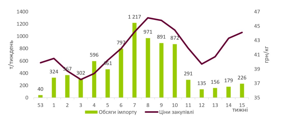 При цьому більші обсяги імпорту не завадили ціні на живець в Україні у лютому 2021, усупереч традиційному післяноворічному спаду, навпаки, зростати. А в квітні, незважаючи на позитивну динаміку внутрішніх цін закупівлі, що є головним чинником нарощування поставок із-за кордону, імпортна активність була мінімальною з початку року.