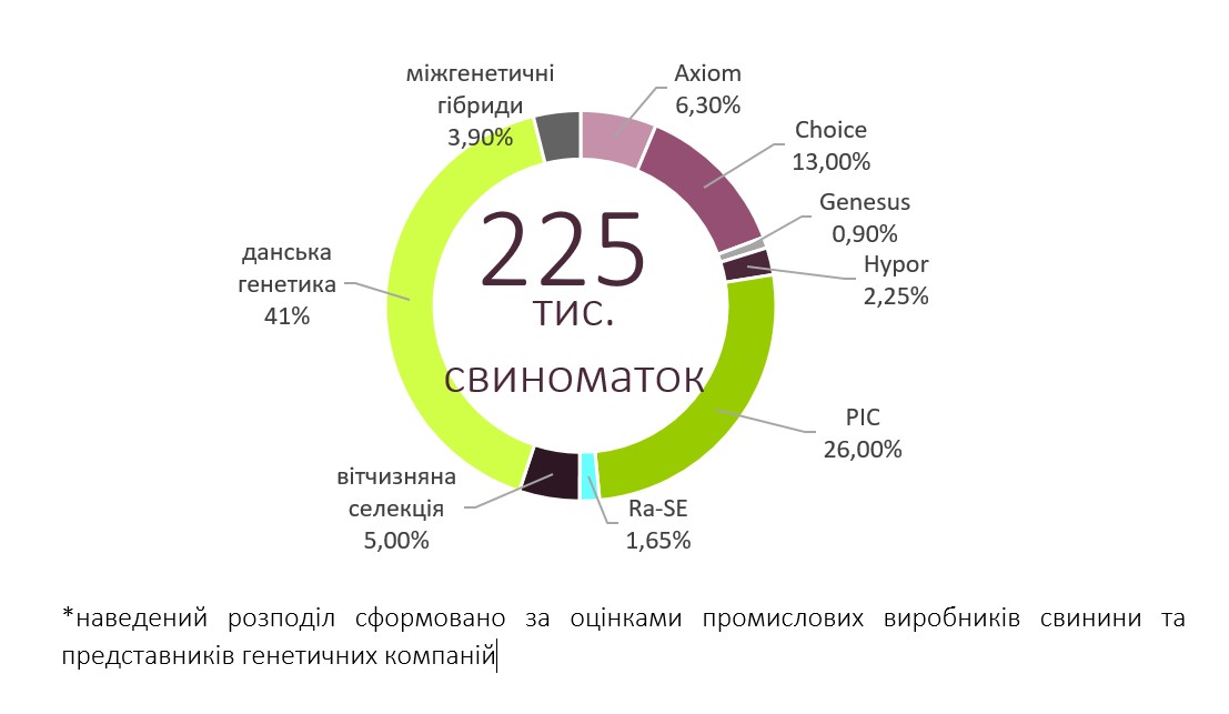 «Враховуючи неоднозначну ситуацію на ринку, динамічні та різноспрямовані зміни на багатьох підприємствах галузі, досить важко дати точну оцінку генетичного профілю вітчизняного свинарства. Тож наведений розподіл є досить умовним, зокрема і через те, що генетика батьківського стада та/чи походження генетичного матеріалу для запліднення свиноматок до розрахунку не брали. Проте навіть така орієнтовна оцінка дозволяє зрозуміти, що стоїть за виробничими здобутками вітчизняних свиногосподарств», — коментують в аналітичному відділі Асоціації «Свинарі України».