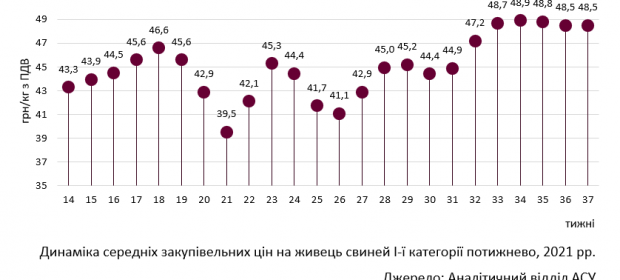 За даними аналітичного відділу Асоціації «Свинарі України», ціни закупівлі свиней забійних кондицій у третій декаді вересня коливалися в межах 47,5-49,5 грн/кг. Оператори ринку прогнозують, що наступного тижня робочий …