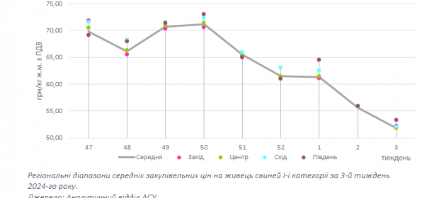 Темпи зниження цін на ринку живця у середині січня уповільнюються, констатують аналітики Асоціації «Свинарі України» за підсумками щотижневого моніторингу закупівельних цін.