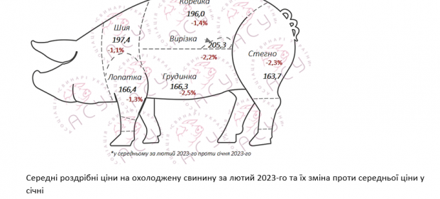 Середня ціна охолодженої свинини у лютому була на 1,4% чи 2,5 грн/кг дешевшою ніж місяцем раніше. Таку зміну помітили аналітики Асоціації «Свинарі України» у ході щомісячного моніторингу роздрібних цін …