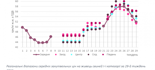 У кінці липня ціни закупівлі живця «надолужили» втрачене за останні два тижні, констатують в аналітичному відділі Асоціації «Свинарі України».