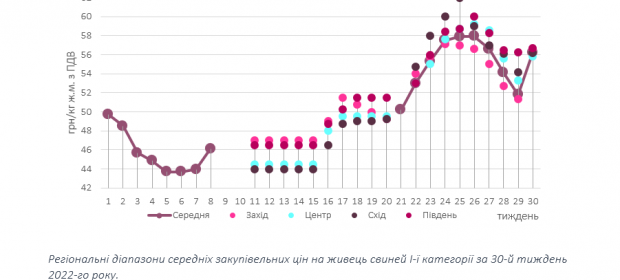 Так, за підсумками торгів на 30-й тиждень, ціни на свиней забійних …